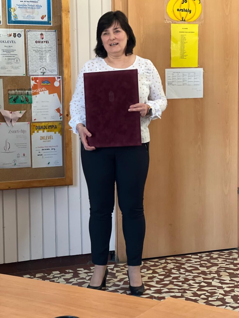 „Viplak Katalin pedagógus kollégánk kapta meg a Miniszteri Elismerő Oklevelet, egyetlen pedagógusként a Váci Tankerületi Központ fenntartott intézményei közül idén. Viplak Katalin 35 éve dolgozik a Tahitótfalui Pollack Mihály Általános Iskola és AMI-ban, ez volt az első munkahelye is. Az elismerést magas színvonalú szakmai munkájáért, kiemelkedő és eredményes tehetséggondozó, versenyre felkészítő munkájáért, közösségi tevékenységéért és példamutató munkahelyi magatartásáért ítélte oda Miniszter úr, a fenntartó és az iskola közös felterjesztése, ajánlása alapján. Az elismerést, pedagógus kollégái, tanítványai, illetve Zakar Ágnes igazgató asszony, Csepreginé Volosinovszki Mária szakmai vezető asszony jelenlétben adta át tankerületi igazgató úr az iskolában.”
