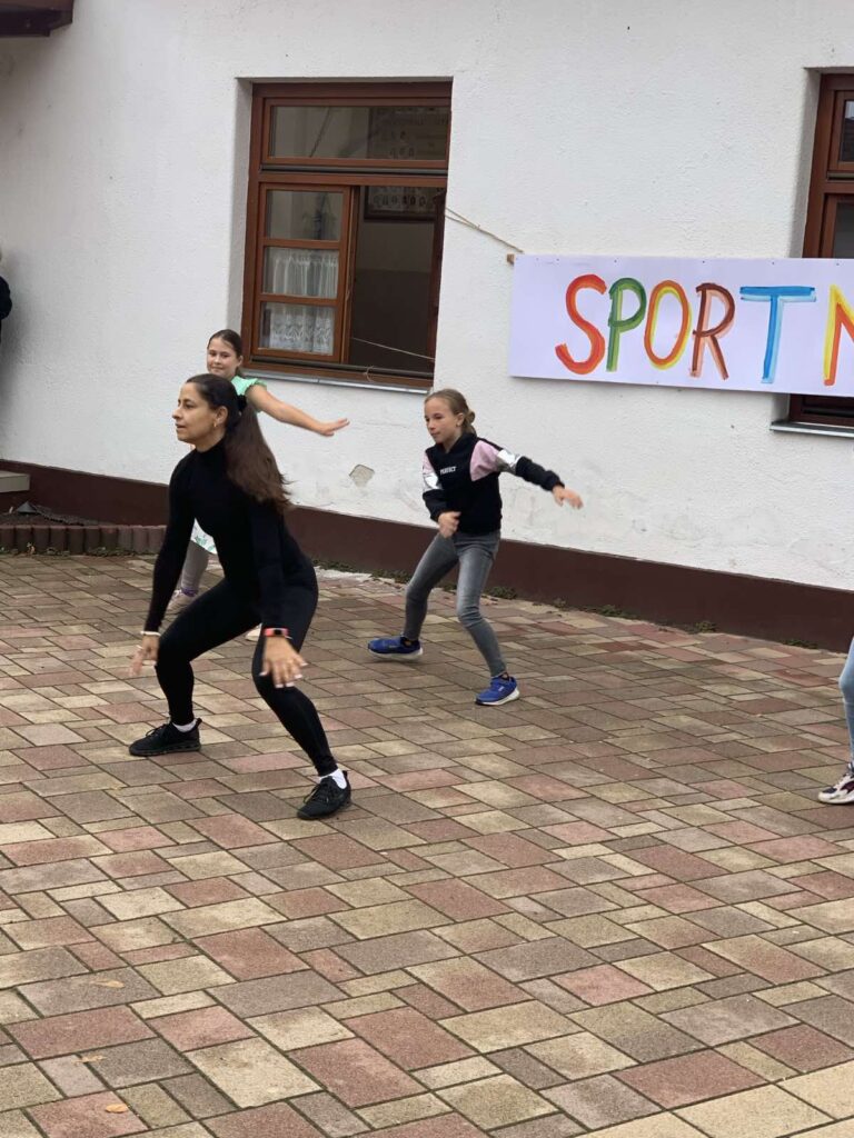 Az idei sportnap egyik különleges színfoltja egy rövid, ám annál lendületesebb aerobic óra volt, amelyet az udvaron tartottam a gyerekeknek. Mindössze öt perc alatt sikerült közös mozgásélményt teremteni: egyszerre zenére, mosollyal és jókedvvel mozdult meg az egész közösség.