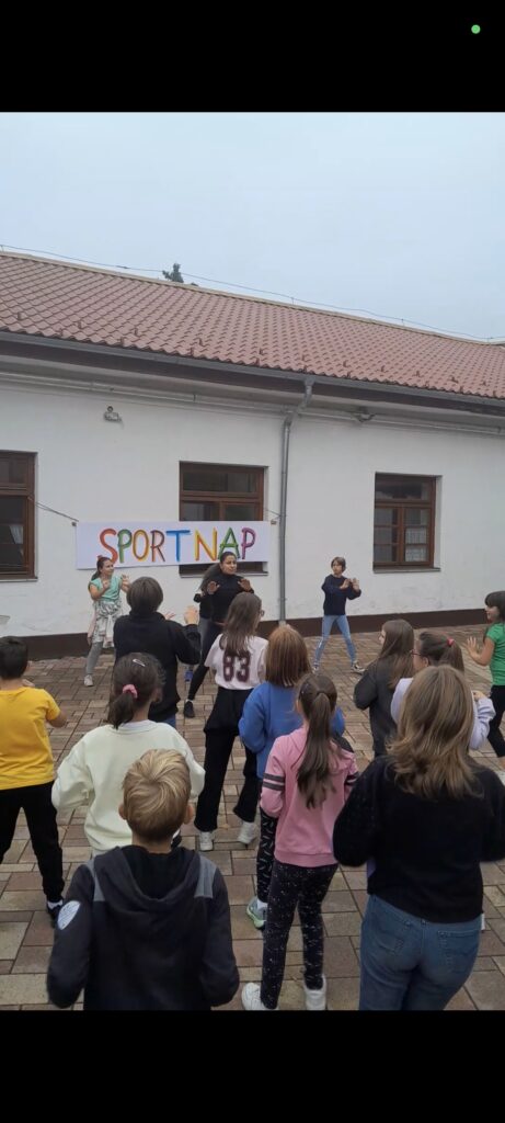 Az idei sportnap egyik különleges színfoltja egy rövid, ám annál lendületesebb aerobic óra volt, amelyet az udvaron tartottam a gyerekeknek. Mindössze öt perc alatt sikerült közös mozgásélményt teremteni: egyszerre zenére, mosollyal és jókedvvel mozdult meg az egész közösség.