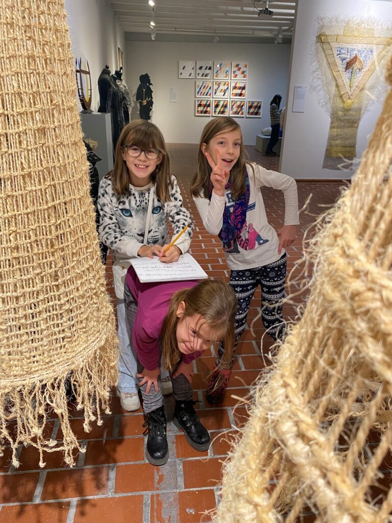 Művész kollégám, Paál Zsuzsanna grafikusművész és iparművész felajánlotta nekünk, hogy egy érdekes, élményalapú múzeumpedagógiai tárlatvezetés keretén belül bemutatja a kiállított tárgyakat. Zsuzsa rendkívüli tehetség mind az alkotói, mind pedig a pedagógiai területen is. A gyerekek több izgalmas feladatot kaptak a jól felépített foglalkozáson: Zsuzsa először megkérte a gyerekeket, hogy nézzék meg a kiállított alkotásokat és írják le, hogy milyen anyagokat fedeznek fel, milyen anyagokkal dolgoztak az alkotó művészek. A feladat végén megbeszéltük, hogy például mi az a plexi, a szizál vagy épp a samott. Ezután 3 alkotást kellett kiválasztani és abból egy mesét, egy történetet szőni. A 3-4 fős csapatok remekül előadták ezeket a rögtönzött meséket. Egy alkotást állóképben vagy mozgásban bemutatni nem könnyű feladat – főleg, ha még hangokat is kell hozzá találni – vagy esetleg valamilyen éneket! De ez a harmadik, drámajátékos feladat sem fogott ki a gyerekeken – meglepő volt, hogy milyen kifejezően tudják a térbeli formákat a saját testükkel ábrázolni. A foglakozás végén Zsuzsa megkérdezte, hogy mit visznek magukkal a gyerekek erről a kiállításról? Erre jött egy nagyon kedves válasz: – „- Én a szarvasos alkotást vinném el magammal” – ezután többen elmondták, hogy nagyon érdekes és izgalmas esemény volt és jó érzés volt egymás ötleteit és kreativitását együtt megélni, a rögtönzött meséket végighallgatni és különös módon az alkotásokba kicsit másképpen belelátni, így azokhoz közelebb kerülni.