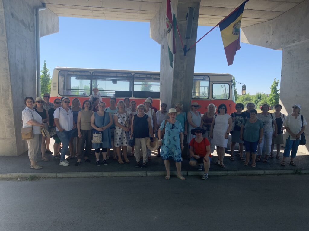 Érkezésünket követően a múzeumi kisvonattal fél órát utaztunk a Haranglábig. Az erdélyi tájegységbe határátkelőn át vezetett az utunk. Itt a magyar-román átkelőnél két idegenvezető hölgy várt minket. Sok érdekességet megtudtunk tőlük az erdélyi tájegység kialakulásáról, építéséről, kultúrájáról, hagyományairól. Előadásmódjuk lenyűgöző, figyelmet fenntartó, érdekes volt. Köszönjük!