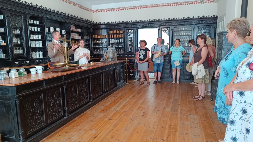 Ezt követően két csoportba rendeződtünk, ahol igazi felfedezésben volt részünk az erdélyi kisváros épületei (Postahivatal, Gyógyszertár, Kávéház stb…) között sétálva. Egy-egy épületbe belépve a múzeumba dolgozó színészek játéka tette még színvonalasabbá, emlékezetesebbé ezt a pár órát, amit ott töltöttünk.