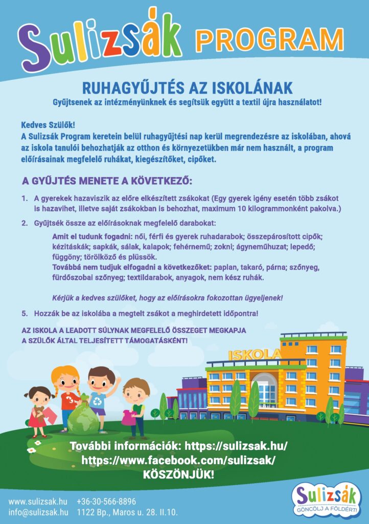 1. 2025. Február 11-én ismét sulizsákos akció lesz a tahitótfalui iskolában.